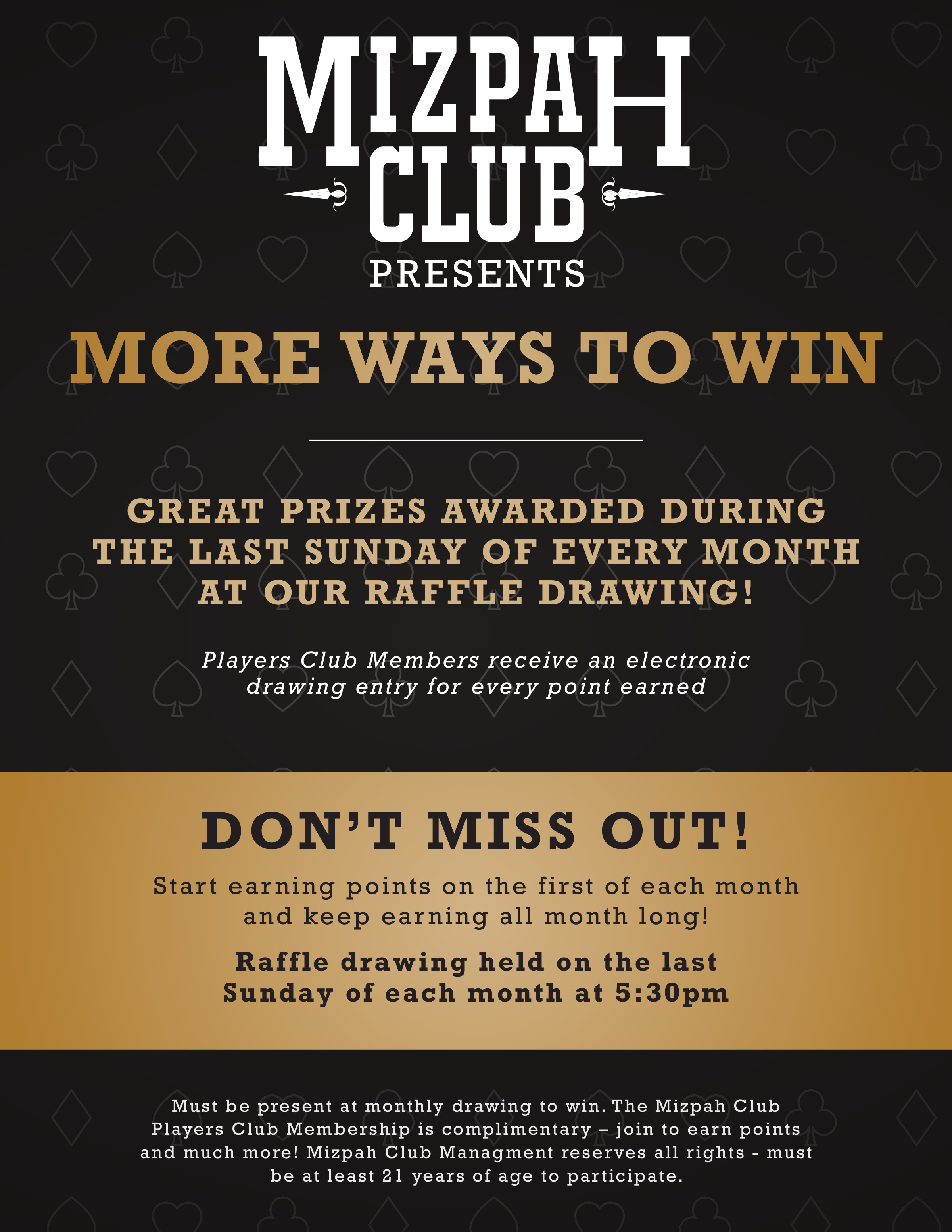Monthly Drawing! Play with your club card to be entered to win cool prizes!